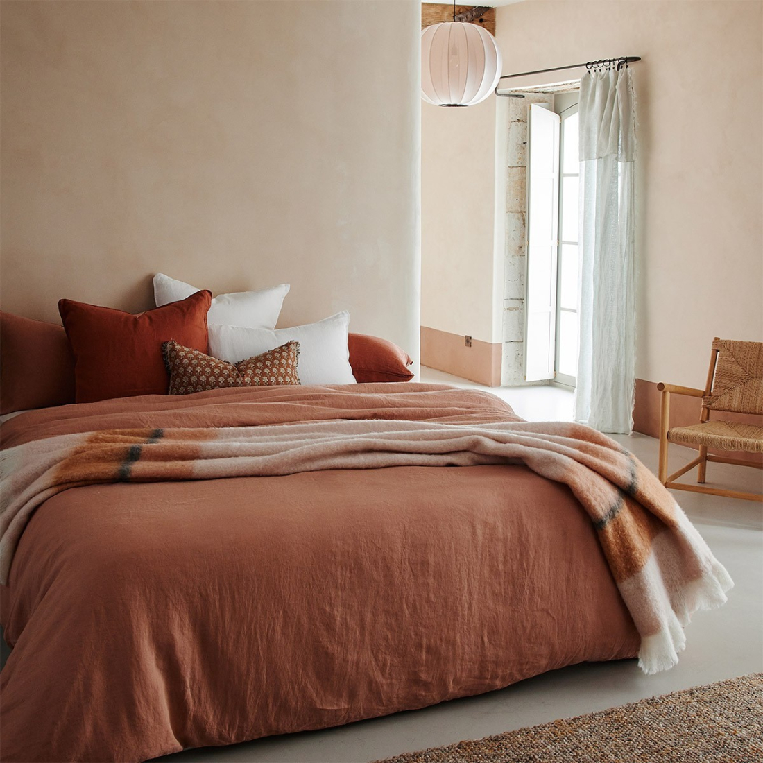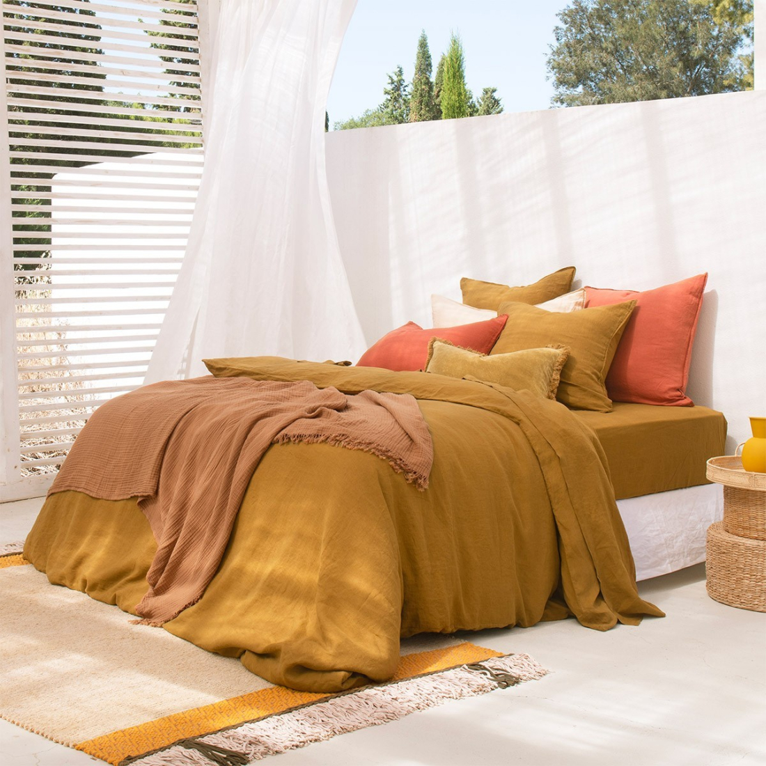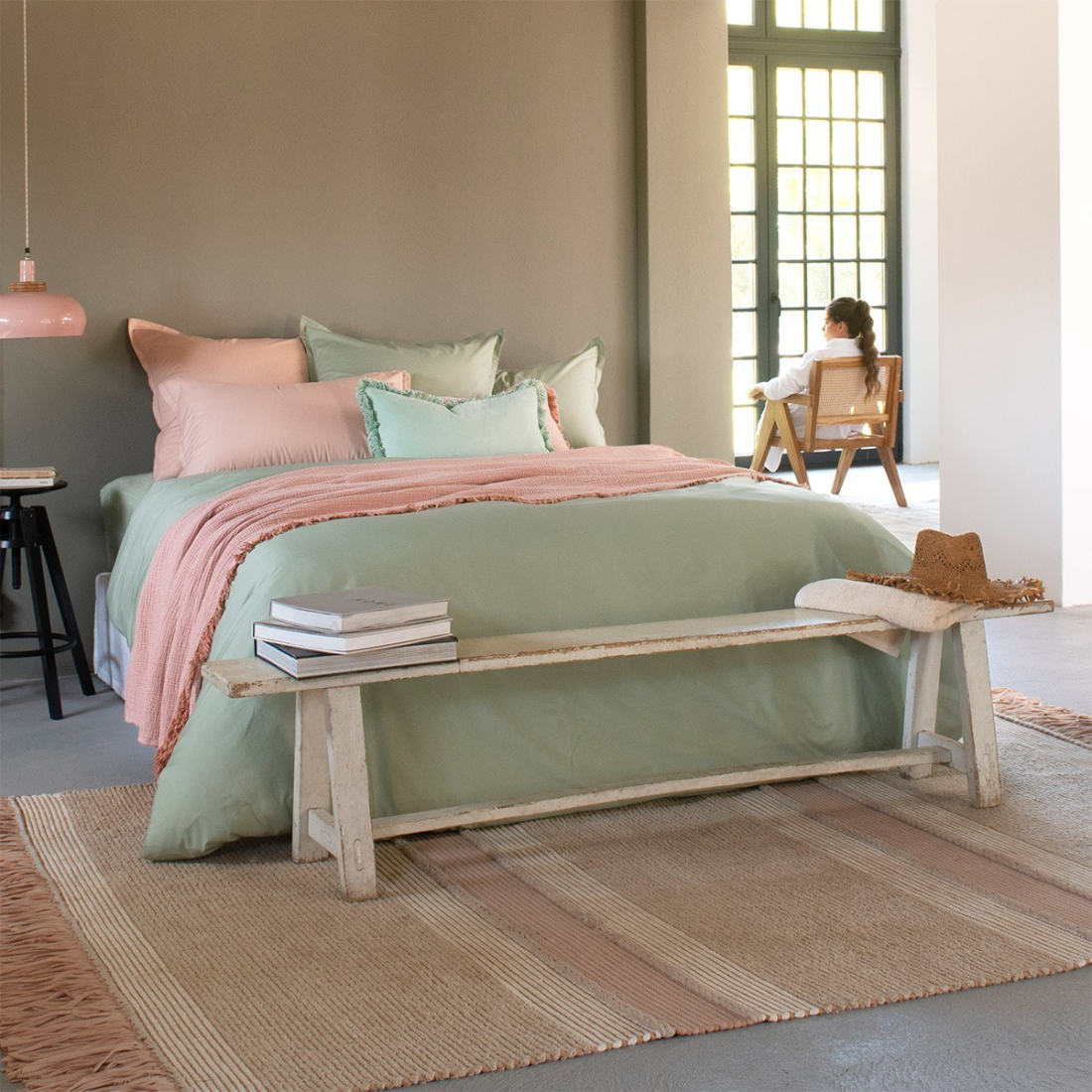 Joyeux colorama, douceur au toucher, détails soignés. La collection en percale de coton unie est un terrain de jeu idéal pour mixer les nuances et varier les ambiances.